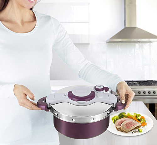 Chi cerca buona qualità insieme ad un design diverso dal solito apprezzerà sicuramente questa SEB Stovetop: la sua colorazione viola insieme all’impiego di più materiali (acciaio inox per il coperchio, alluminio per il corpo principale e plastica per il sistema di chiusura ermetica) non lascia certo indifferenti. Inoltre SEB non ha certo trascurato la sicurezza né la praticità considerando che con la manopola posta sul coperchio si possono scegliere due diversi livelli di cottura e che il coperchio stesso si può aprire e chiudere usando una sola mano (in cucina è davvero utile una simile caratteristica). Infine è abbastanza leggera e molto facile da pulire grazie al rivestimento interno antiaderente. Le uniche pecche forse sono rappresentate dal manuale d’uso che non include la lingua italiana e dal prezzo leggermente alto rispetto alla concorrenza ma d’altra parte le opinioni di chi l’ha acquistata sono prevalentemente positive.