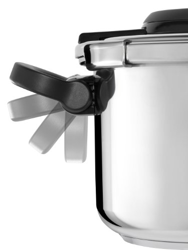 Dotata di manici ergonomici laterale che ne assicurano la conservazione e ne rendono ancor più confortevole l’uso, questa pentola a pressione è dotata anche di un innovativo e pratico sistema di apertura/chiusura sul coperchio, che permette di sbloccarlo con una sola mano grazie all’uso di una semplice manopola.